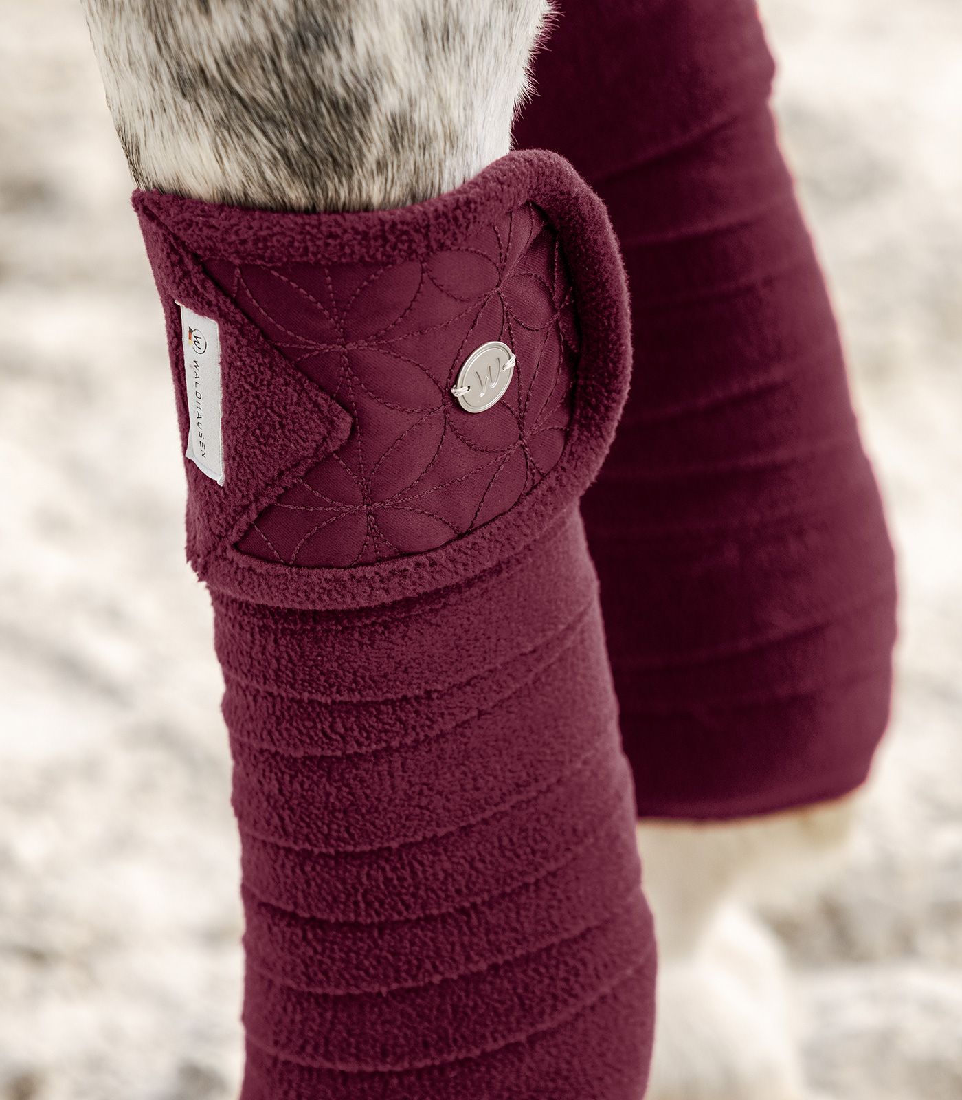 Bandages en polaire de haute qualité en polaire 380g/m² anti-boulochage. Avec un détail floral sur la fermeture velcro et une plaque métallique de couleur argentée. Assorti à notre collection Rom.