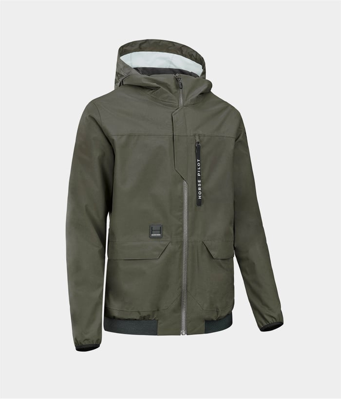 Veste d’équitation hivernale chaude et déperlante, ultra fonctionnelle avec capuche à ranger et multi-poches doublées polaire pour un confort optimal à cheval.
