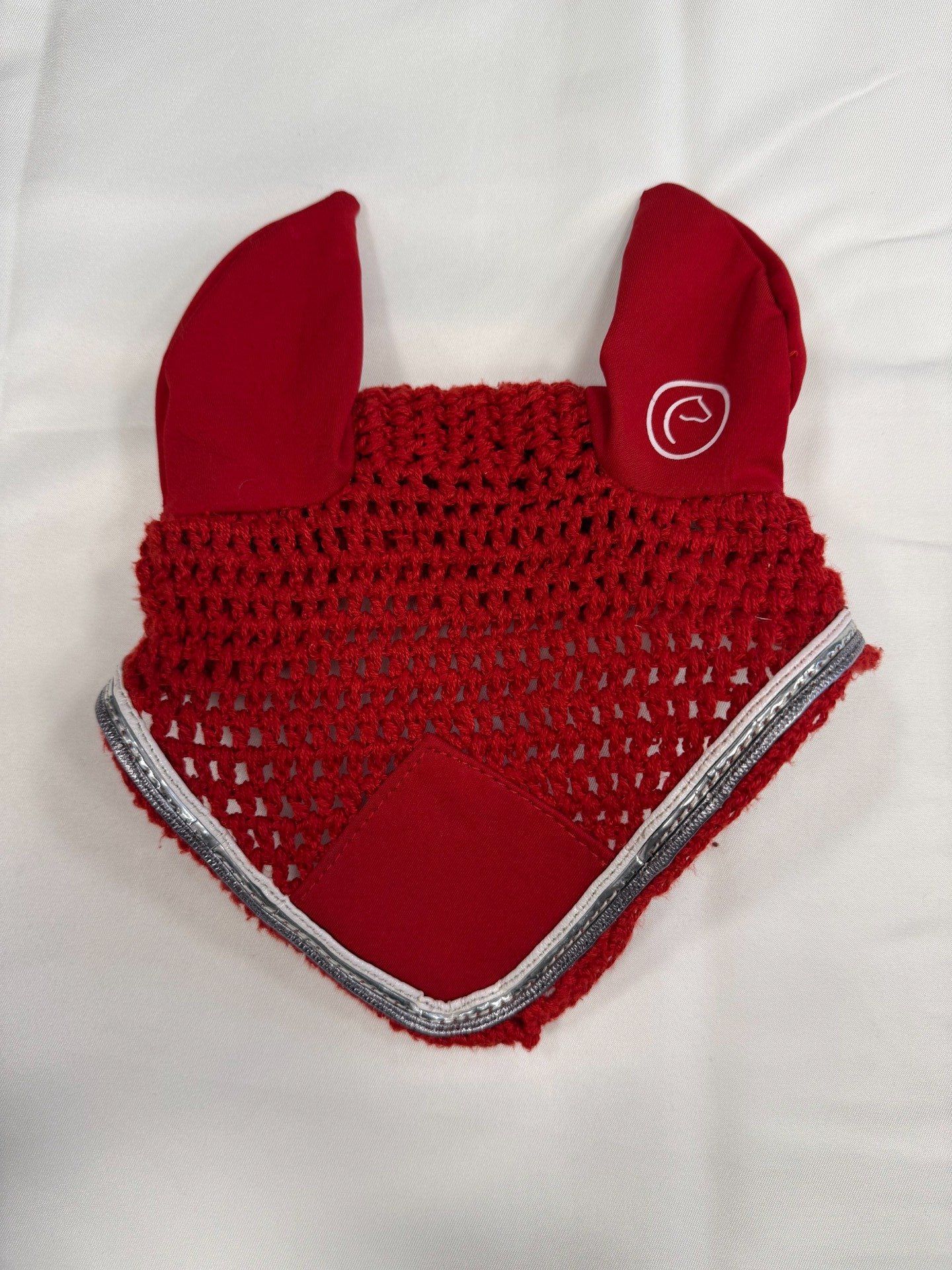 Bonnet Equithème taille poney. Les oreilles ont été recousues pour s’adapter aux oreilles d’un poney A / shetland !