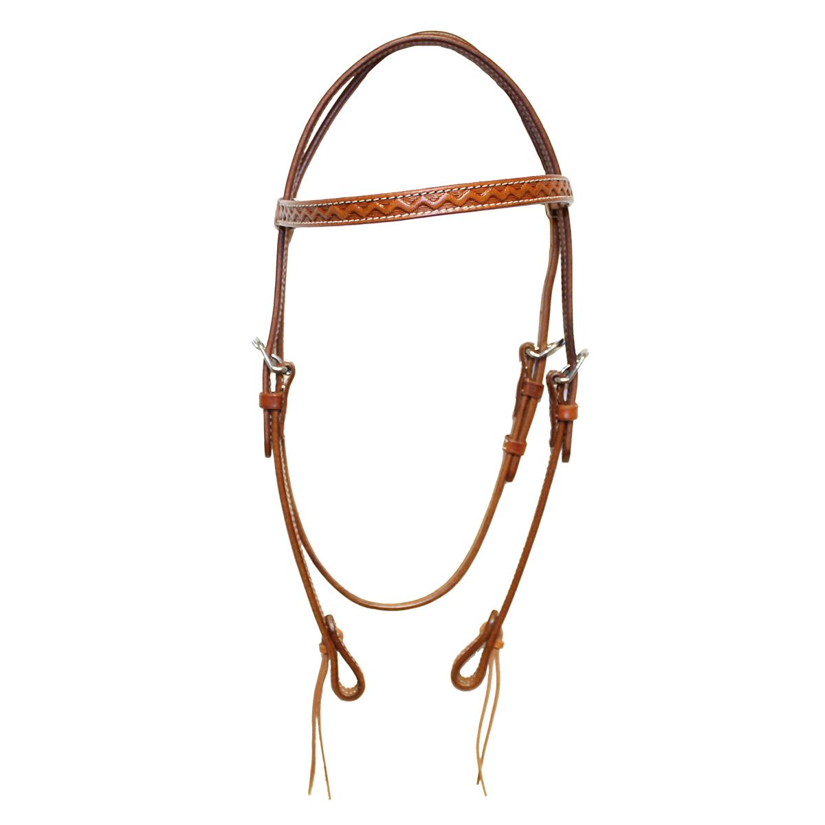 Ce bridon est confectionné en cuir américain de qualité, alliant solidité et élégance. Sa têtière à motif zig-zag apporte une touche décorative originale, typique du style western.