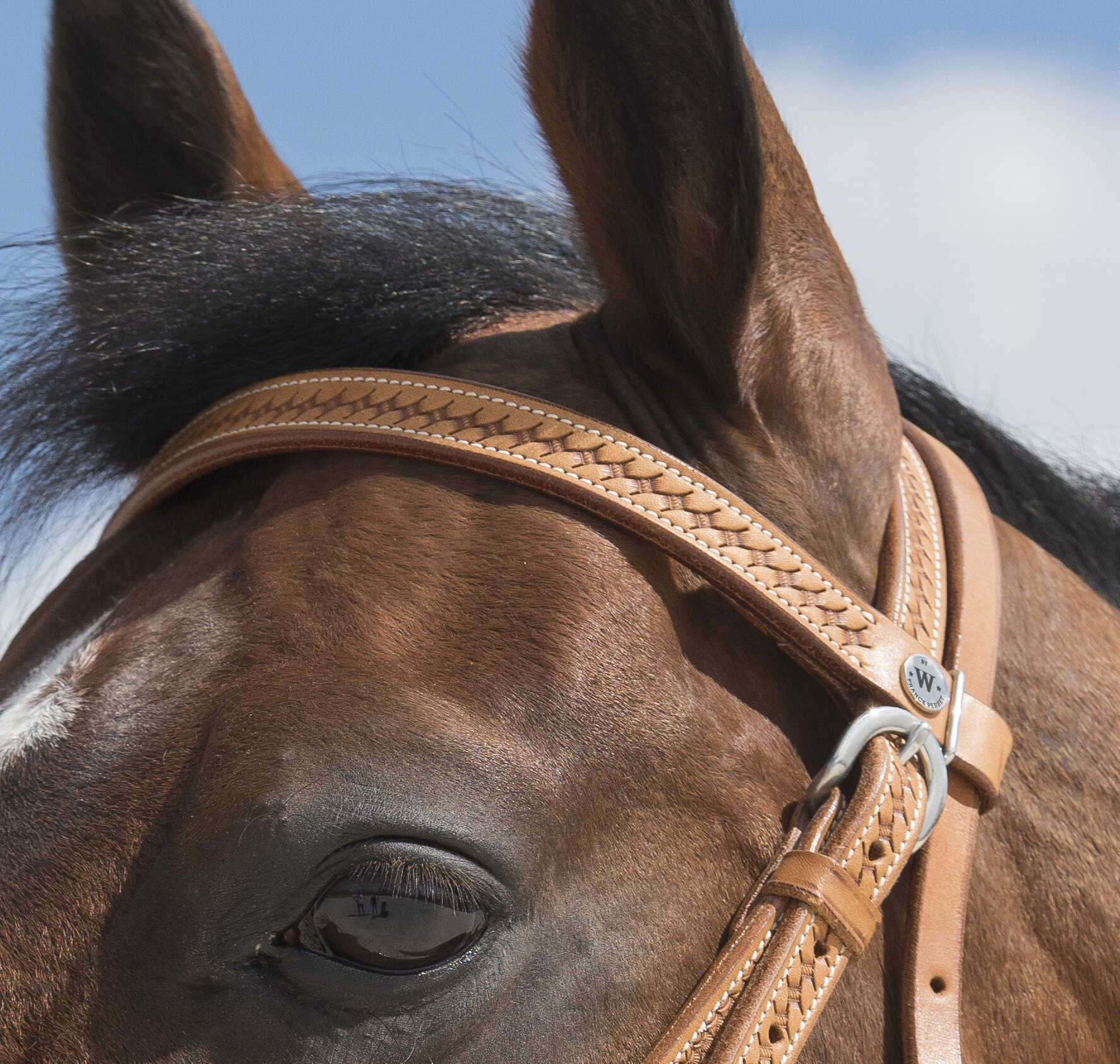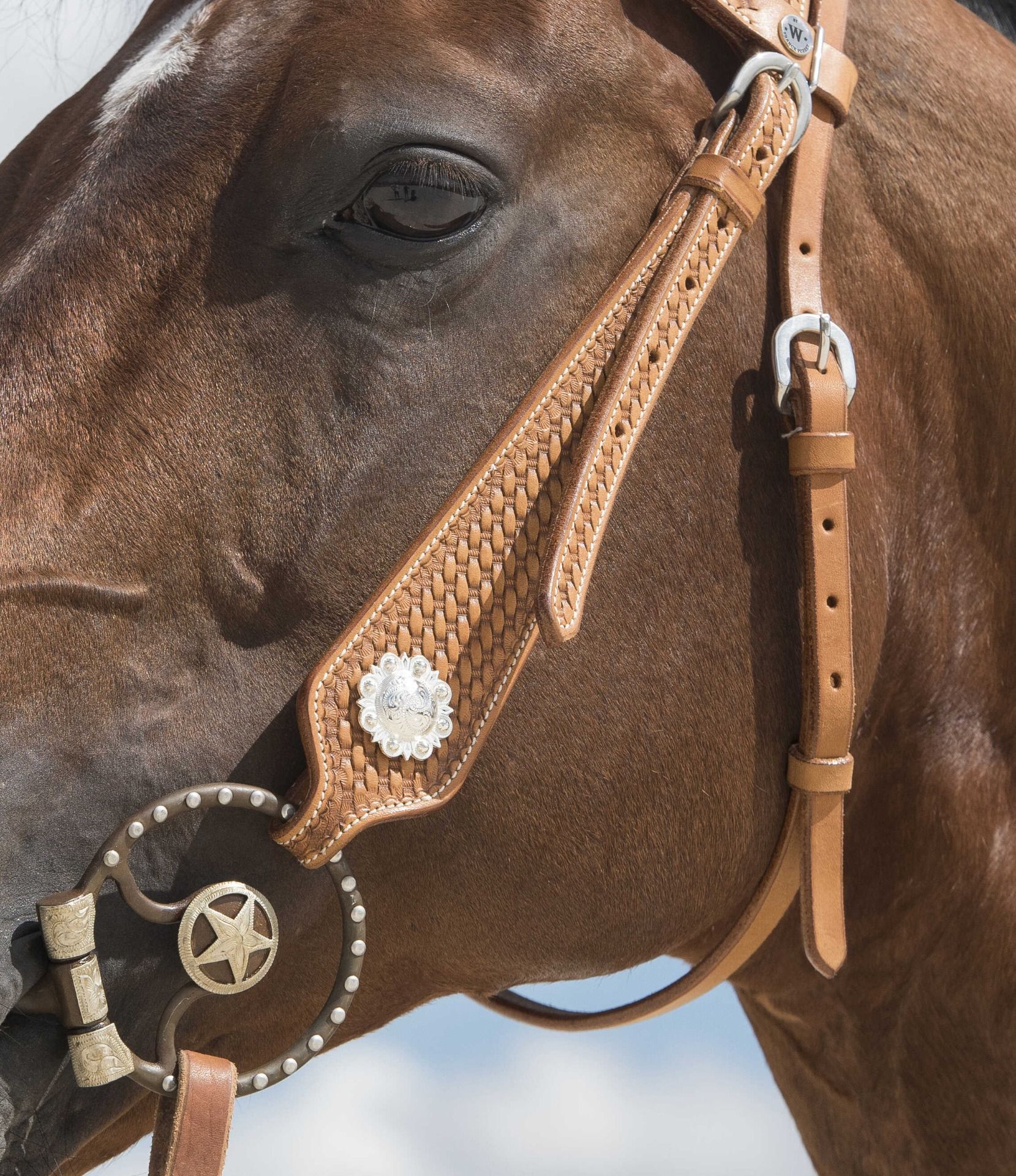 Accessoire en cuir de vachette avec frontal, motif Basket et décoration concho !