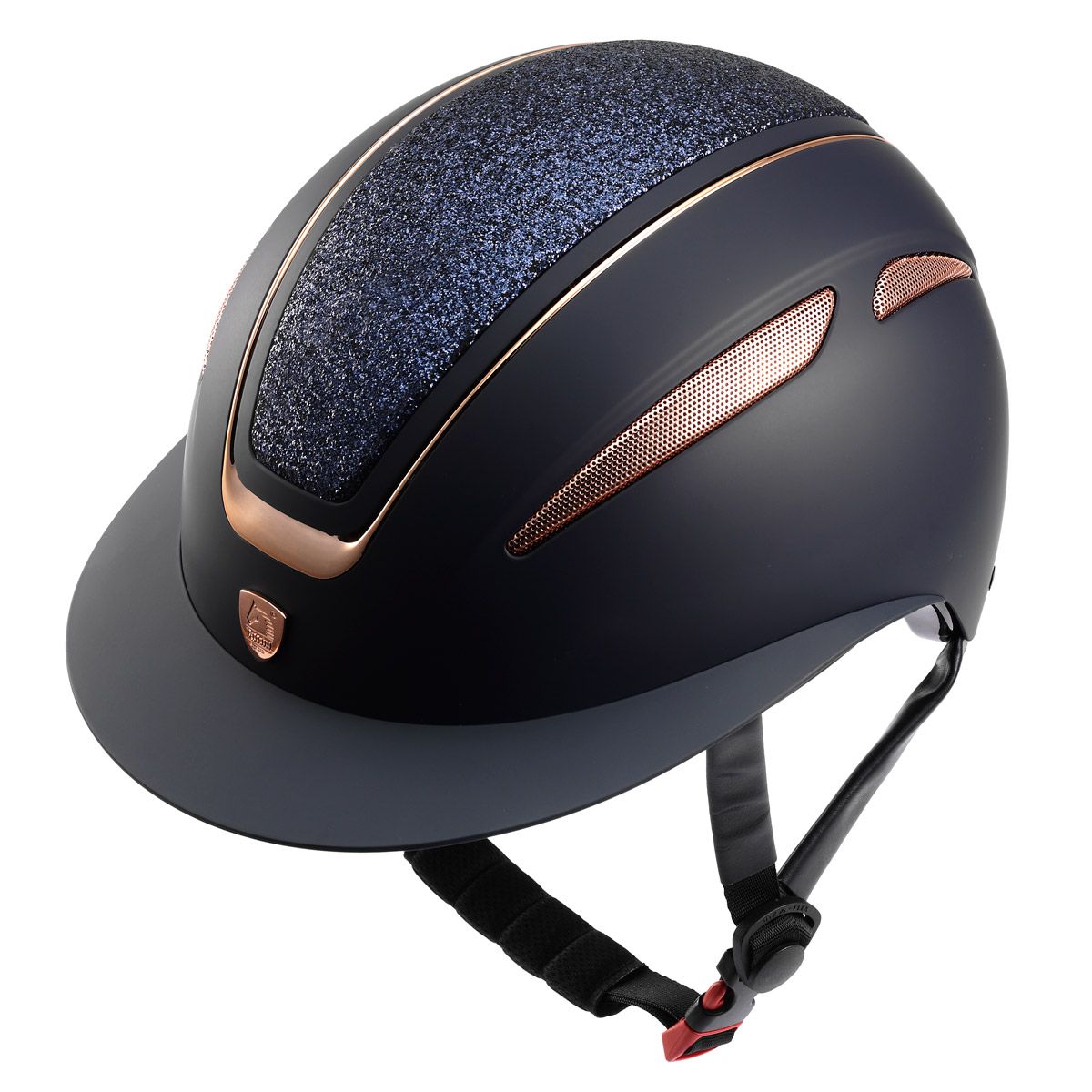 Le nouveau casque de luxe Tattini avec profils brillants or rose, doté d’une plaque super brillante avec cristaux et d’une toute nouvelle personnalisation : le logo Tattini profilé or rose. Autres caractéristiques : Réglage micrométrique par molette