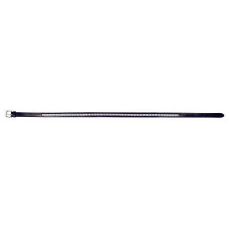 Un motif classique indémodable. - En cuir bombé carré avec motif "Fancy". - Décorée d'une fine surpiqûre blanche en bordure. - Largeur adaptée aux passants des culottes d'équitation. - Boucle à rouleau polie forme rectangle. COMPOSITION : Cuir de