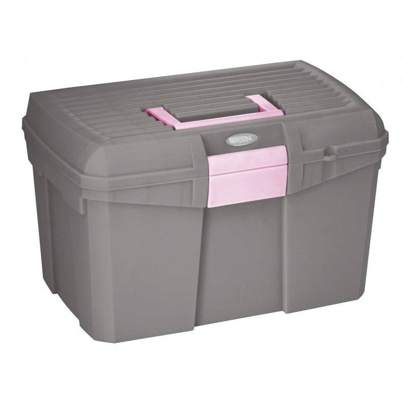Coffre de pansage bicolore et pratique, idéal pour organiser et ranger tous vos accessoires de pansage. Son couvercle renforcé peut servir de montoir ou de tabouret pour travailler la crinière ou natter, et supporte jusqu’à 100 kg.