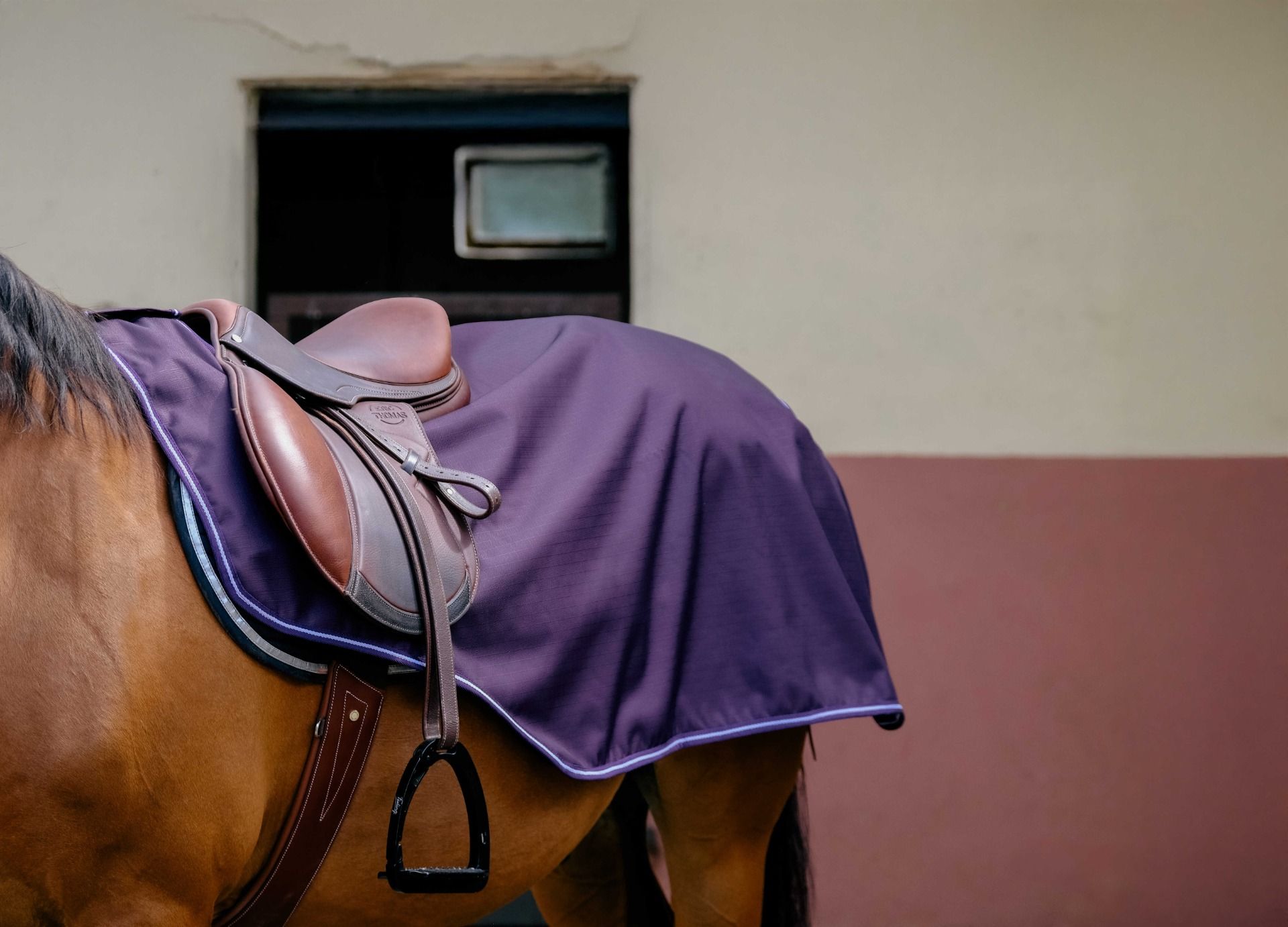 Alliez confort et protection pour votre cheval avec cette couverture EQUITHÈME pensée pour les journées pluvieuses et fraîches.