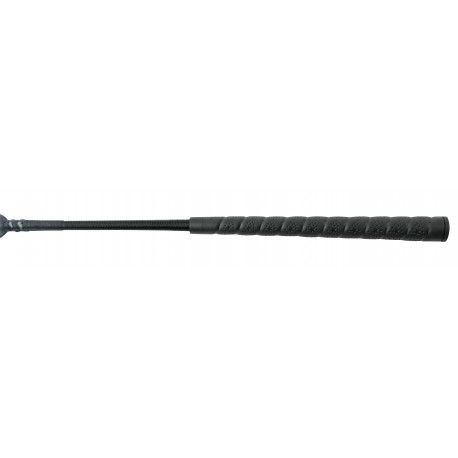 Design : Poignée tête Equithème en allover (Répetition d'un motif) Antidérapant et confort : PU et cuir grip avec culot metal.