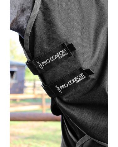 - Couvre-cou amovible en tissu 1200 deniers, imperméable et respirant. Fermeture par Velcro. Fixation à la couverture par trois attaches
