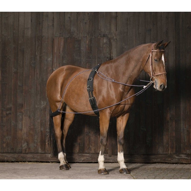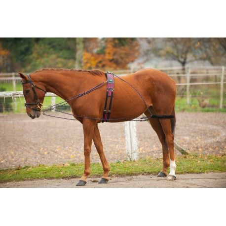 Idéal pour les chevaux raidissant la nuque, adaptable au dressage des jeunes chevaux. Utilisable monté ou à la longe, entièrement élastique et réglable pour un travail sûr et confortable !