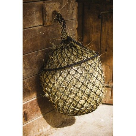 Ce filet à foin est équipé d’un arceau en métal souple de 50 cm, facilitant le remplissage.