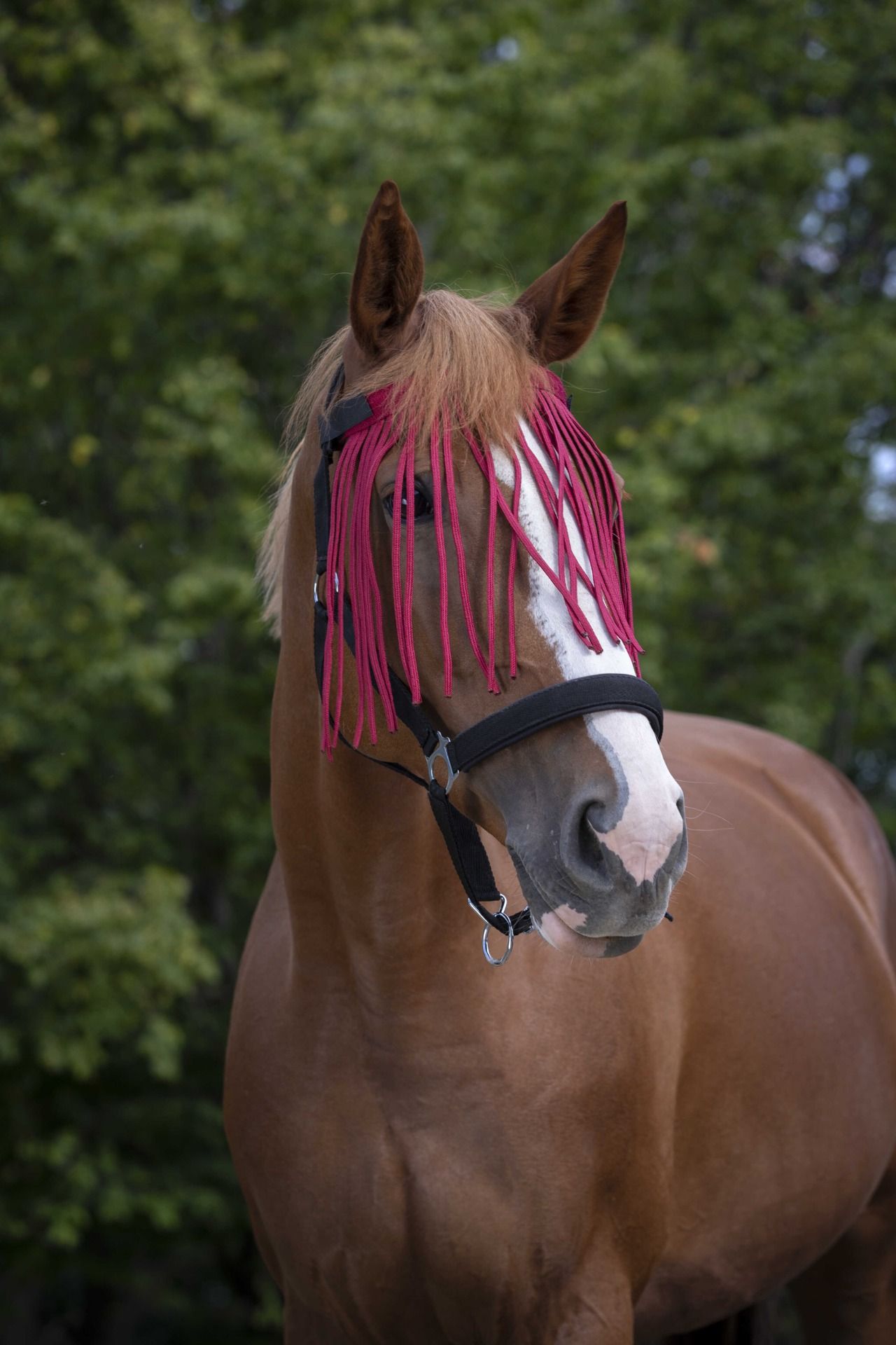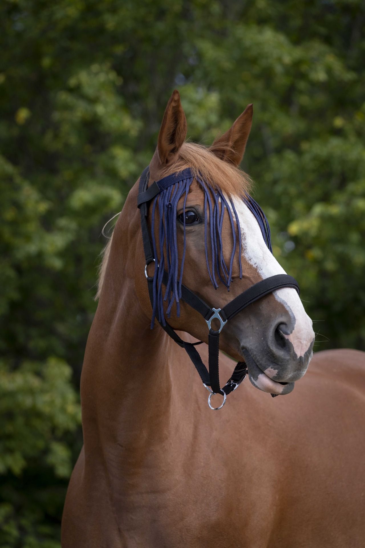 Frontal à franges avec têtière et sous-gorge à scratch, utilisable sans licol !