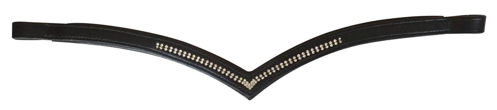 Frontal en cuir de buffle, doublé cuir souple et matelassé EVA, au design original en "V" orné d’une double rangée de strass transparents !