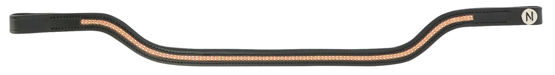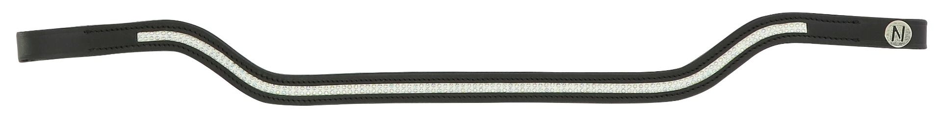 Frontal en cuir de buffle, doublé cuir souple et matelassé EVA, au design original en "V" orné d’une double rangée de strass transparents !