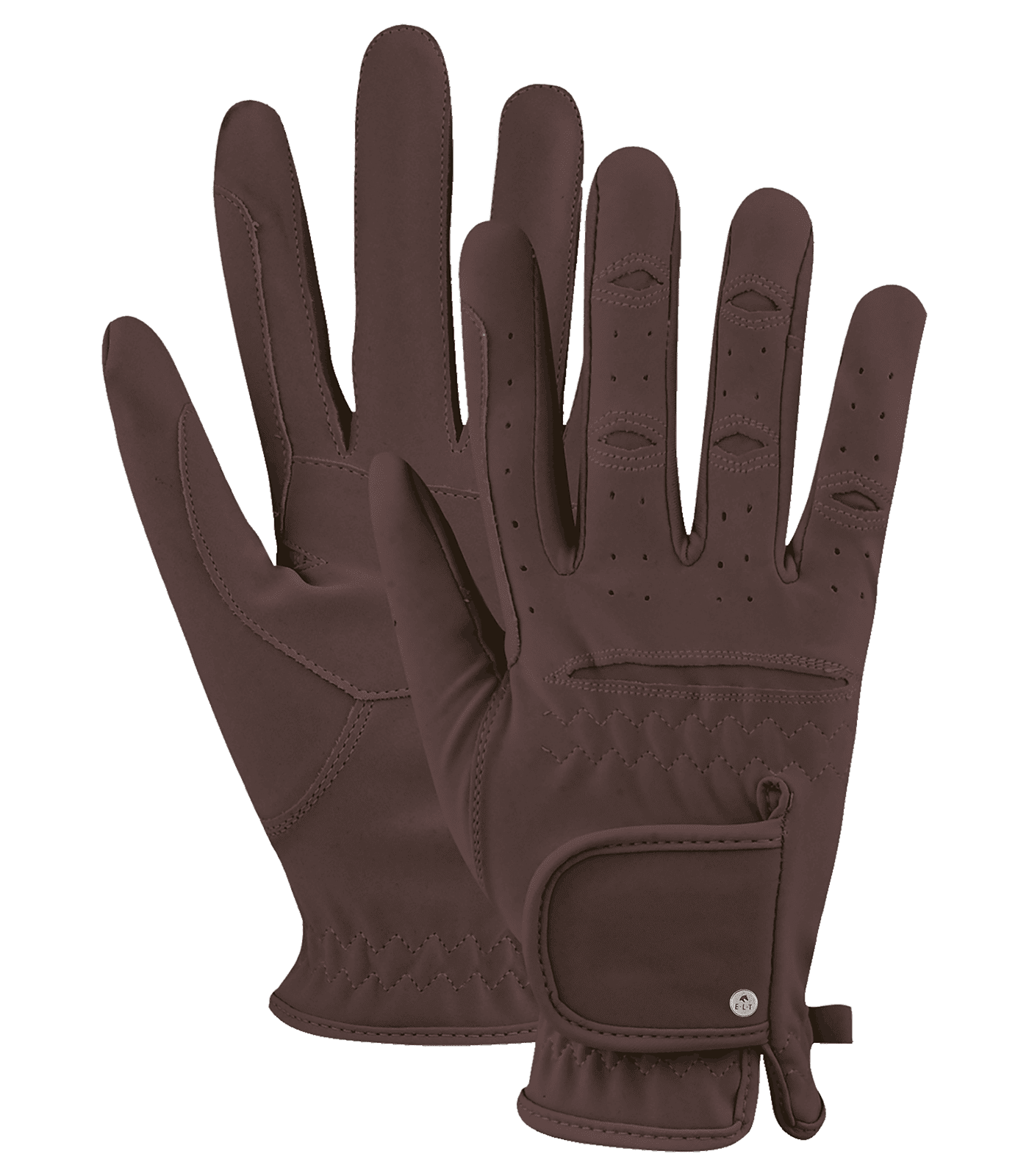- Gant élégant pour l’équitation - Aspect cuir - Léger, souple et très élastique - Ajustement par scratch sur le dessus de la main - Trous d’aération - Paume particulièrement adhérente - Renfort au niveau du passage des rênes