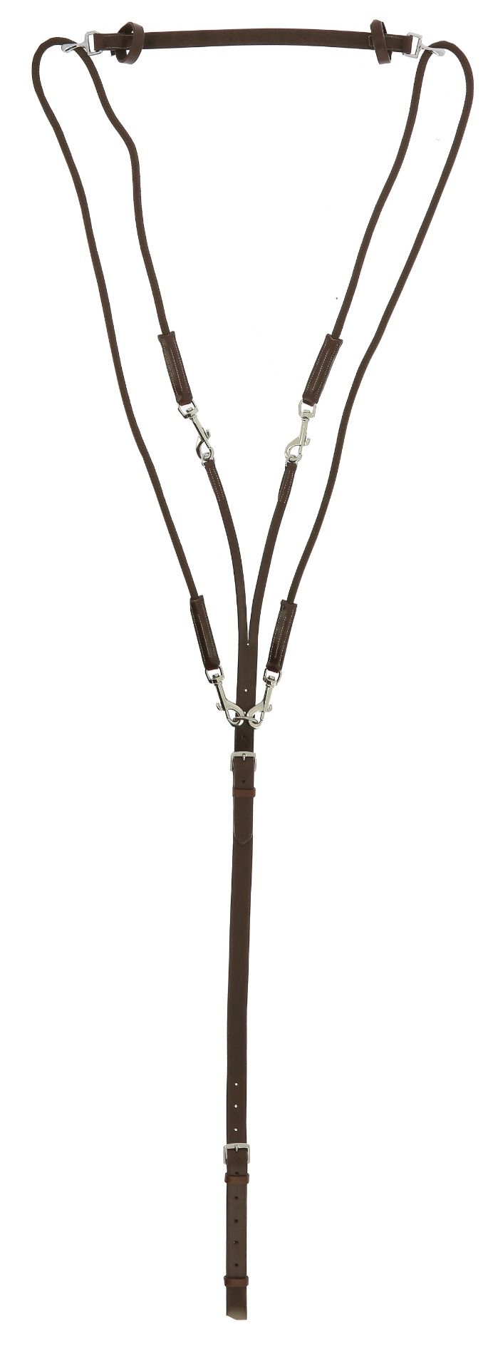 Conçu pour favoriser le développement musculaire du dos, cet enrênement en cuir de buffle agit grâce à un système de poulies et de cordes qui incite le cheval à abaisser naturellement son encolure.