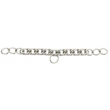 La gourmette FEELING est fabriquée en acier nickelé, un matériau solide et résistant à l’usure. Dotée de 24 anneaux, elle assure un excellent maintien et une action régulière pour un travail précis et efficace. Pratique et robuste, elle constitue un choix fiable pour l’attelage ou le travail à la main.