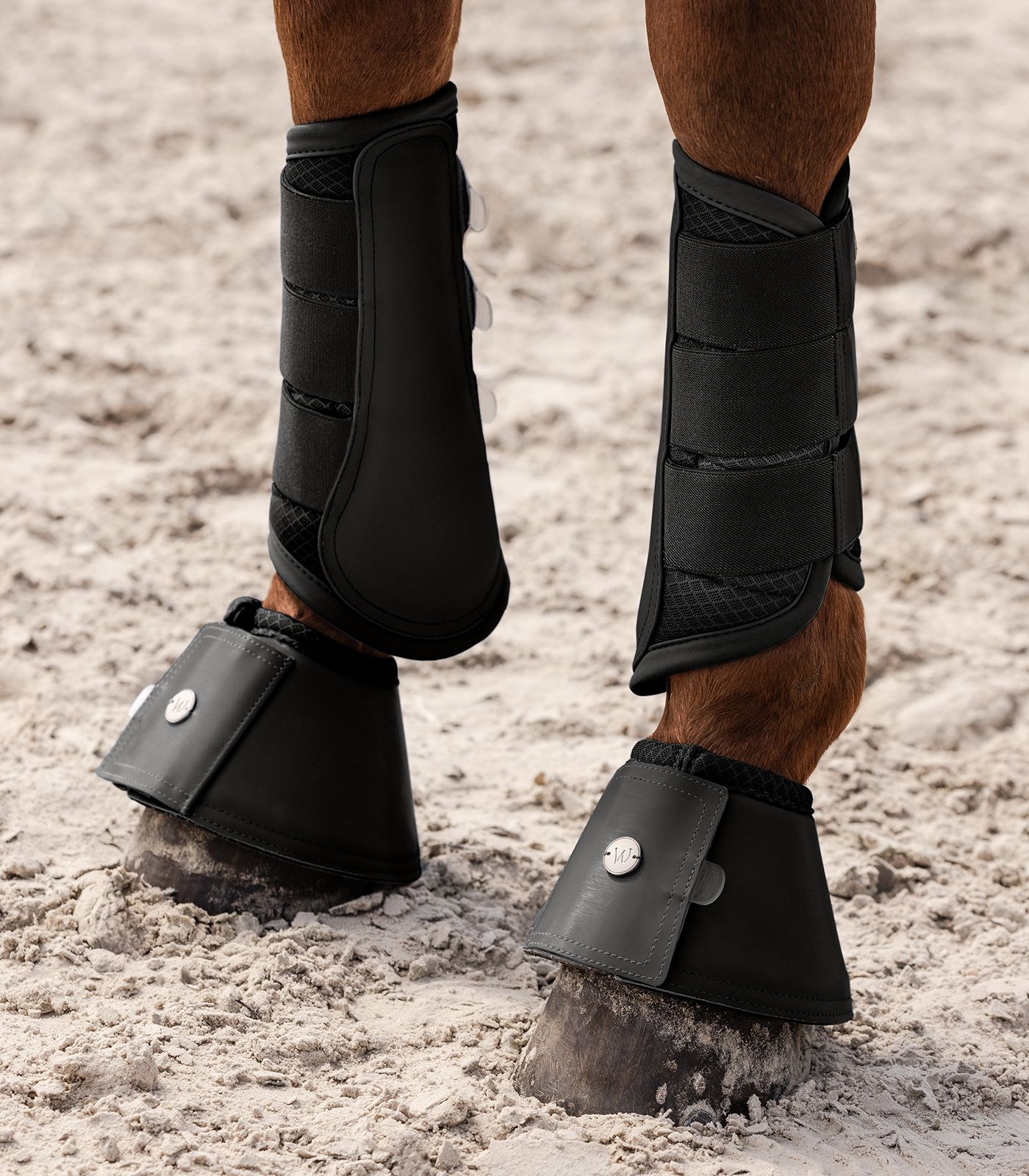 Guêtre de dressage pour les antérieurs et les postérieurs. L"extérieur et l"intérieur en maille respirante préviennent l"accumulation de chaleur. Le dispositif de protection contre les chocs est fabriqué en PU robuste. Avec un petit logo en métal argenté. Assorti à notre collection Rimini. Par paire