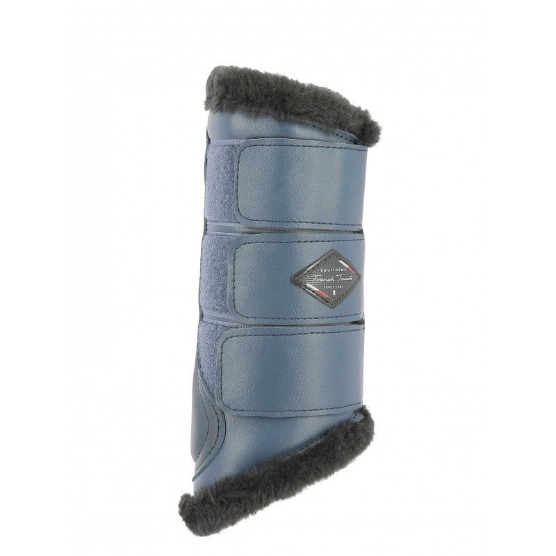 Protections de travail avec coque en polyuréthane doublées fourrure 100 % polyester avec fermeture en velcro. Ces protections, très polyvalentes, peuvent s’utiliser dans la majeure partie des cas pour le travail ou en sortie quotidienne. Parfaitement assorties aux tapis, bonnets, licols, bandes de polo, guêtres et protège-boulets de la panoplie French Touch.
