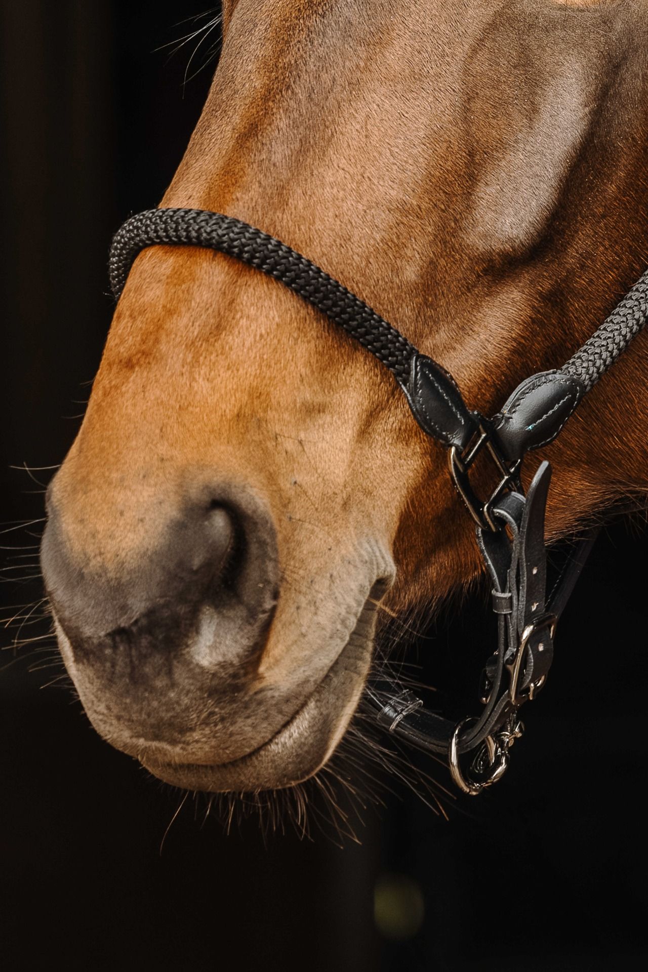 Licol 2-en-1 cuir et corde : confortable, léger et pratique, il se transforme facilement en licol grooming pour le quotidien de votre cheva !