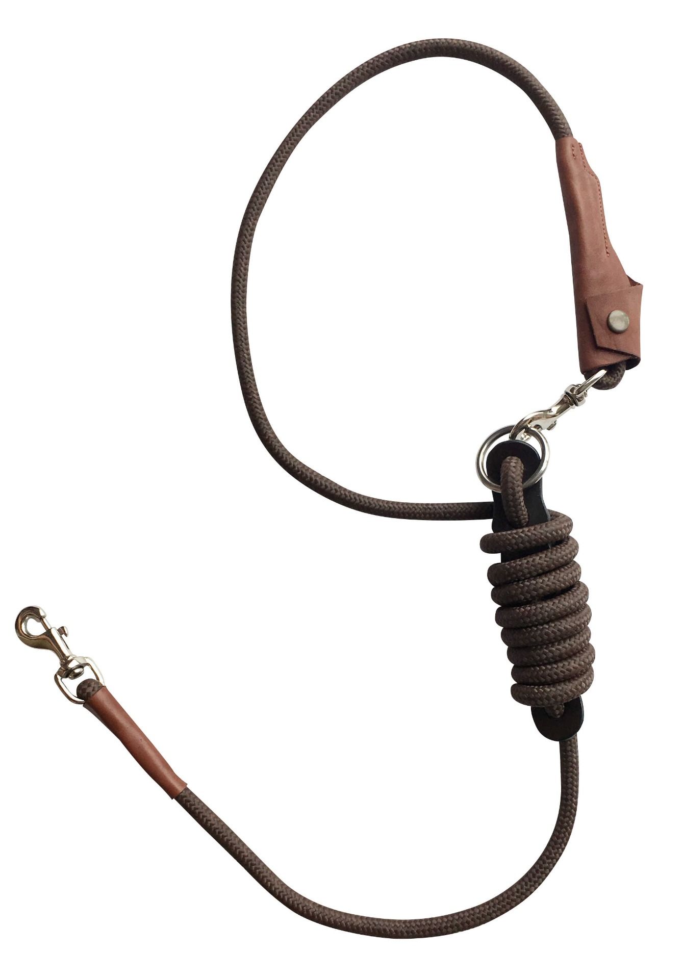 Longe de 3 m en polypropylène avec renforts cuir, mousquetons en laiton nickelé et anneau inox !