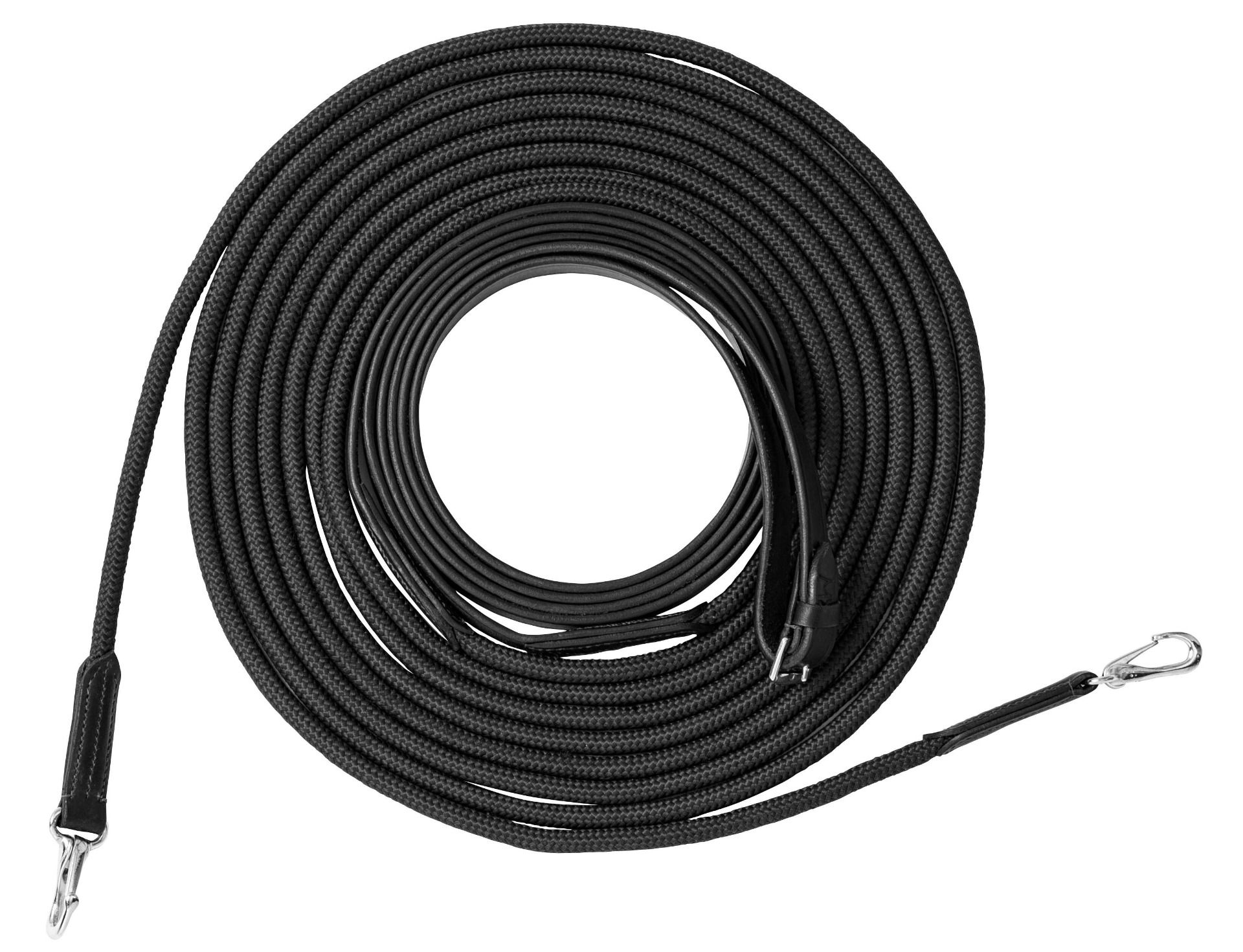 Une longe pratique et robuste, idéale pour le travail à pied en toute sécurité et avec confort pour le cavalier et le cheval.