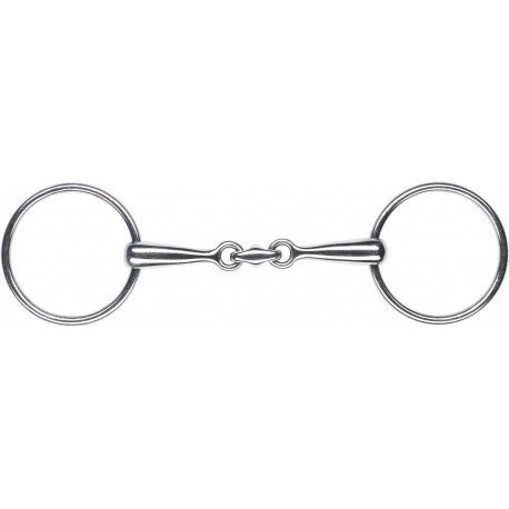 Mors inox à double brisure anatomique, canons fins pour plus de confort et de stabilité. Épaisseur 14 à 16 mm selon taille, anneaux Ø 45 à 65 mm !