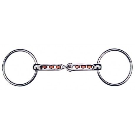 Mors en inox avec rouleaux en cuivre décontractants, bords francs pour limiter l’appui excessif !