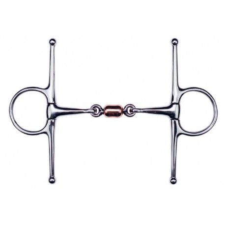 Mors inox avec roulette centrale en cuivre, favorise la direction et la décontraction. Branches 180 mm !