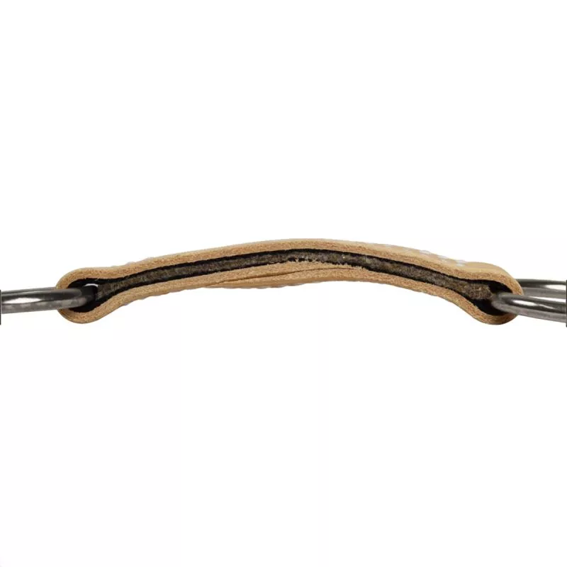 Ce mors plat en cuir naturel végétal est confectionné avec soin, renforcé par une bande intérieure en polypropylène et feutre 100 % laine, offrant douceur, confort et un contact beaucoup moins agressif que les mors métalliques traditionnels. Les tranches biseautées garantissent un maximum de confort pour la bouche du cheval.