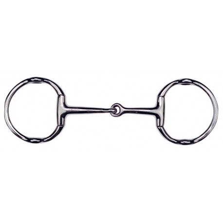 Ce mors en inox est équipé de canons fins (15 mm) qui permettent un contact plus précis et une meilleure finesse dans les aides. Grâce à ses anneaux de 75 mm, il reste stable et confortable dans la bouche du cheval, tout en offrant une action claire et directe.