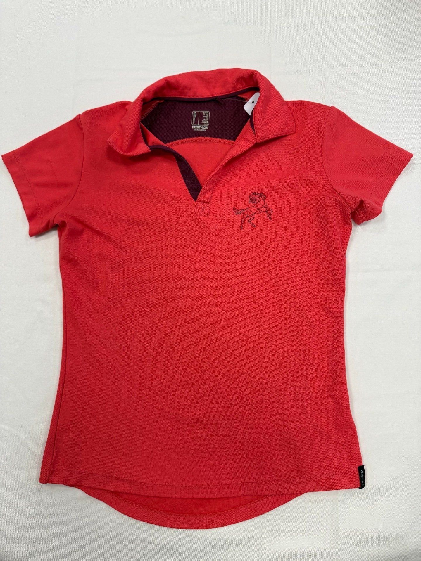 Polo d’équitation Fouganza, confortable et adapté aux adolescents. En excellent état, parfait pour les séances à cheval ou le quotidien.
