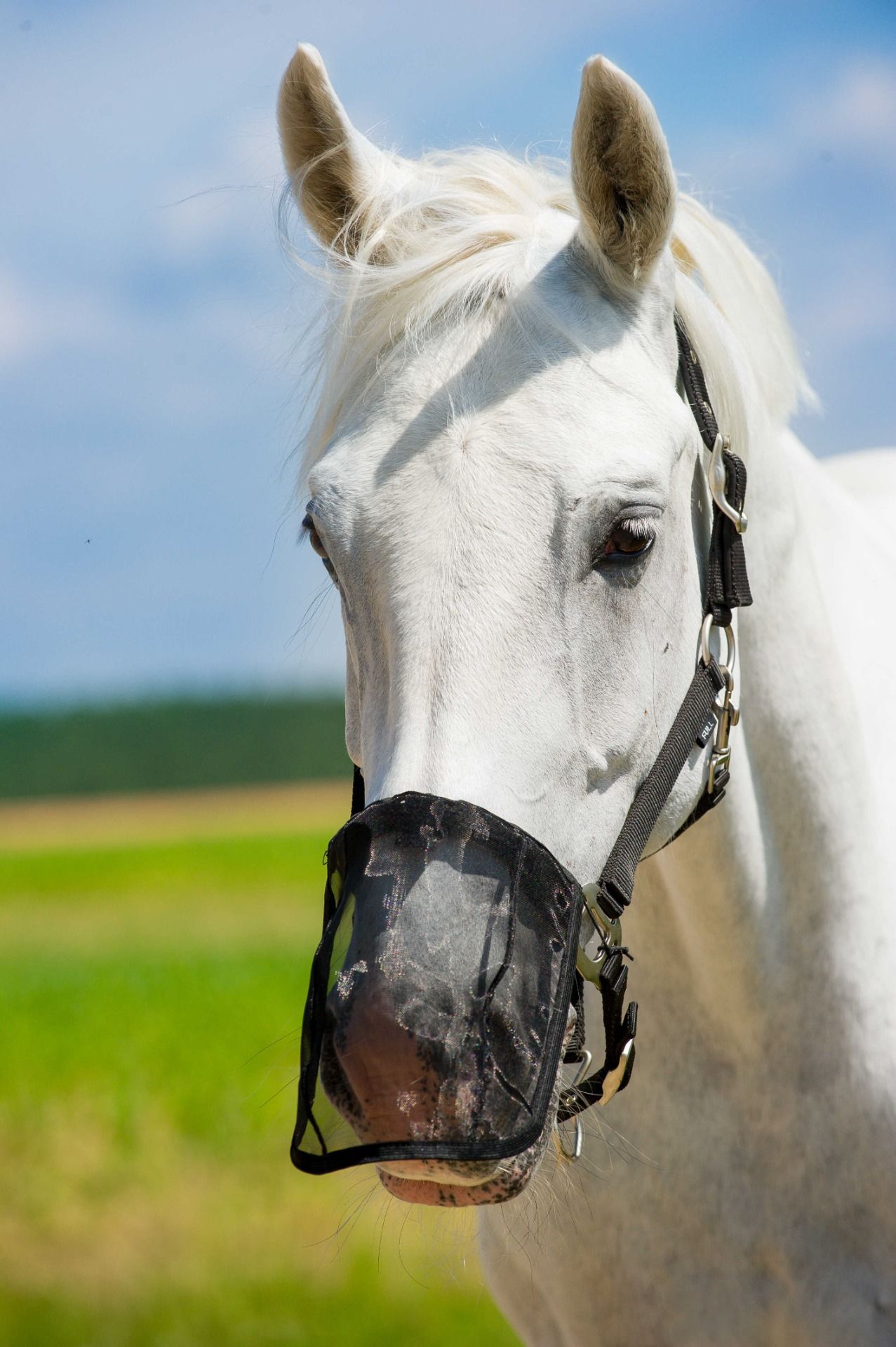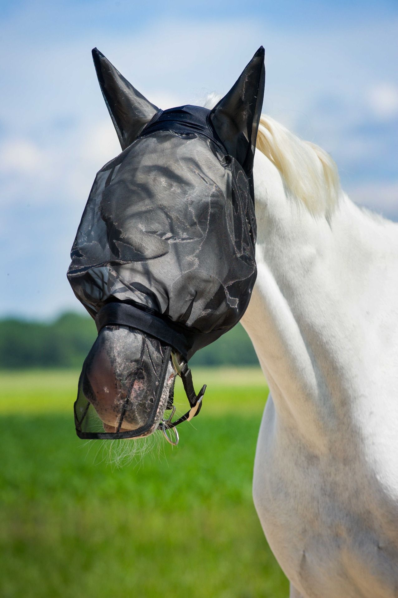 Masque anti-mouches à fixer sur filet ! Se fixe facilement sur un filet, avec protection des yeux par mailles fines, confort respirant et maintien sécurisé par bandes élastiques !