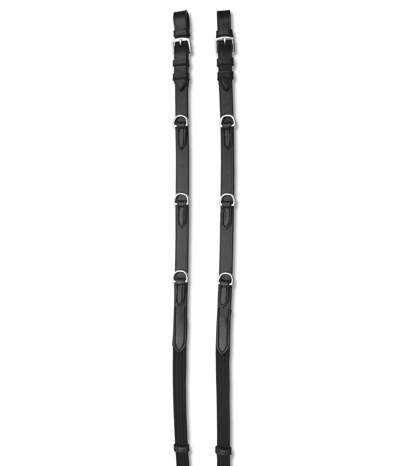 La partie en sangle est équipée d’arrêtoirs pour un contrôle optimal. Solides et durables, elles allient confort pour le cheval et praticité pour le cavalier.
