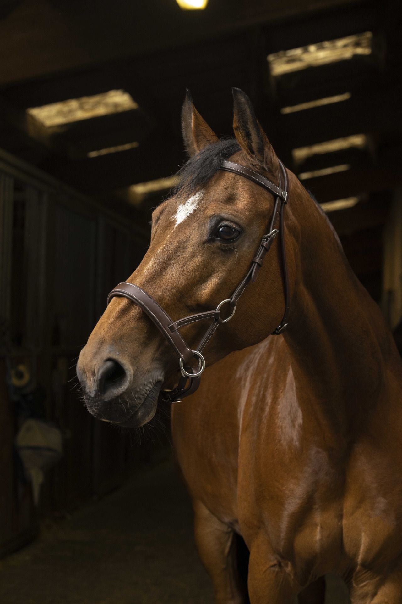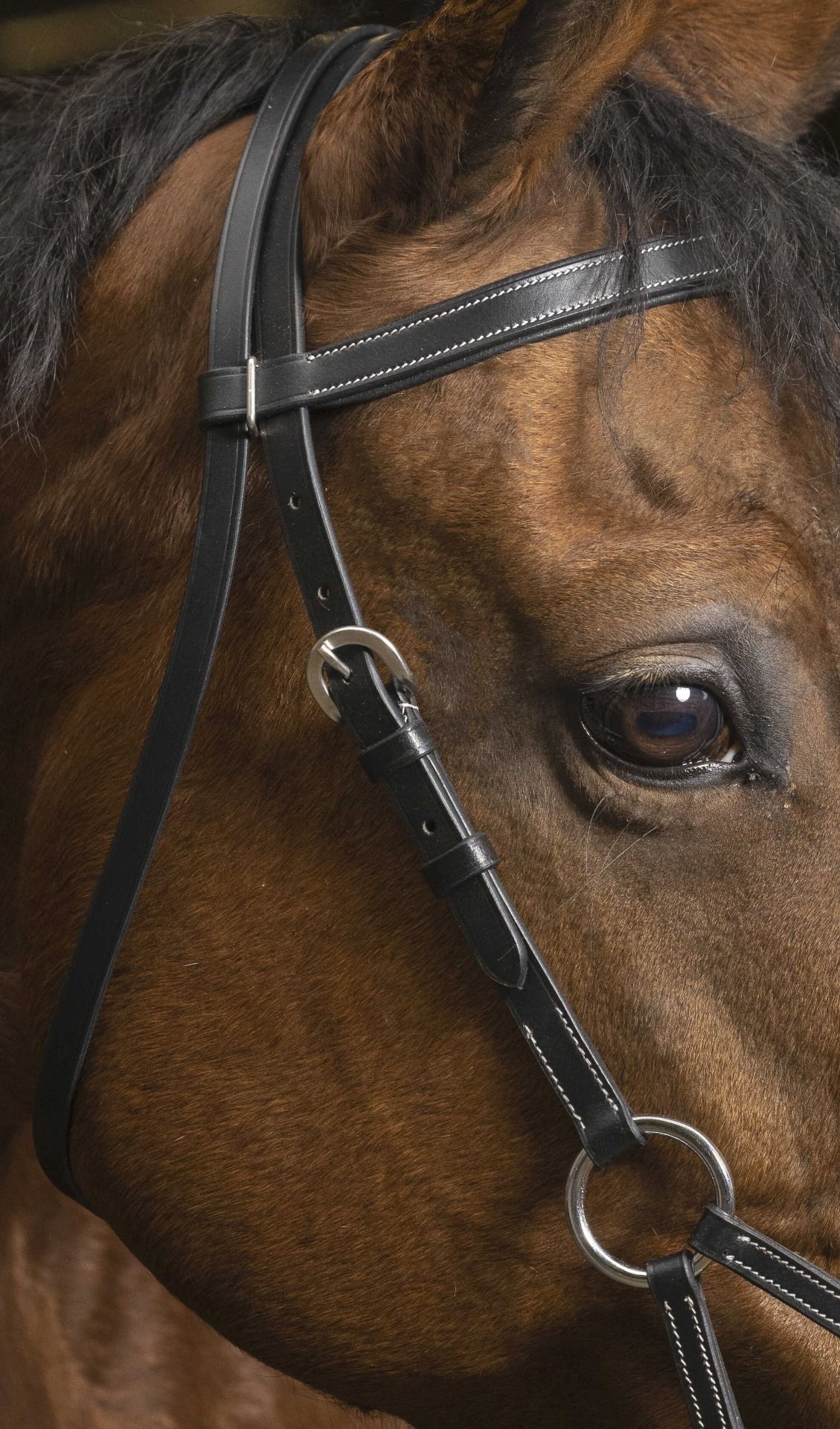Conçu en cuir de buffle solide et durable, il offre un confort accru grâce à sa muserolle et son frontal doublés en cuir de vachette souple.
