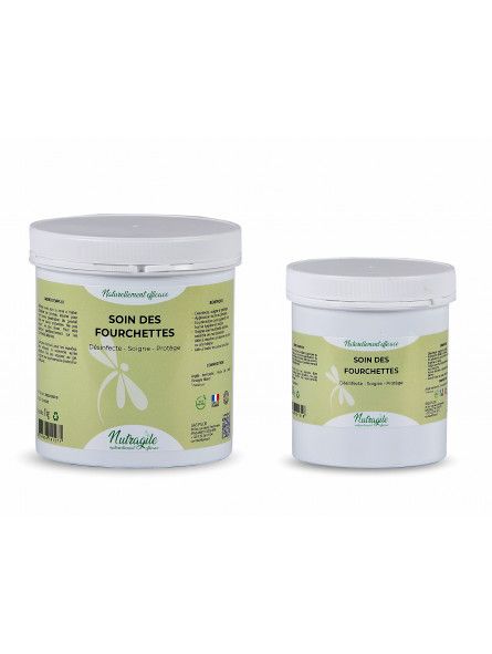 Nutragile soin des fourchettes est un produit facile à appliquer au pinceau constitué d’argile bentonite, enrichie à l’huile de cade et au vinaigre blanc.