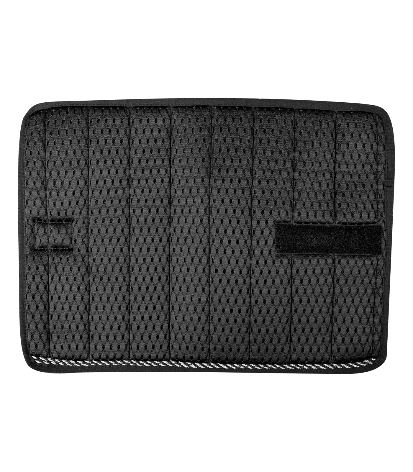 Couche inférieure en mesh 3D respirant, avec fermeture à scratch pour un positionnement aisé. Un cordon décoratif plat se charge de l’esthétique.