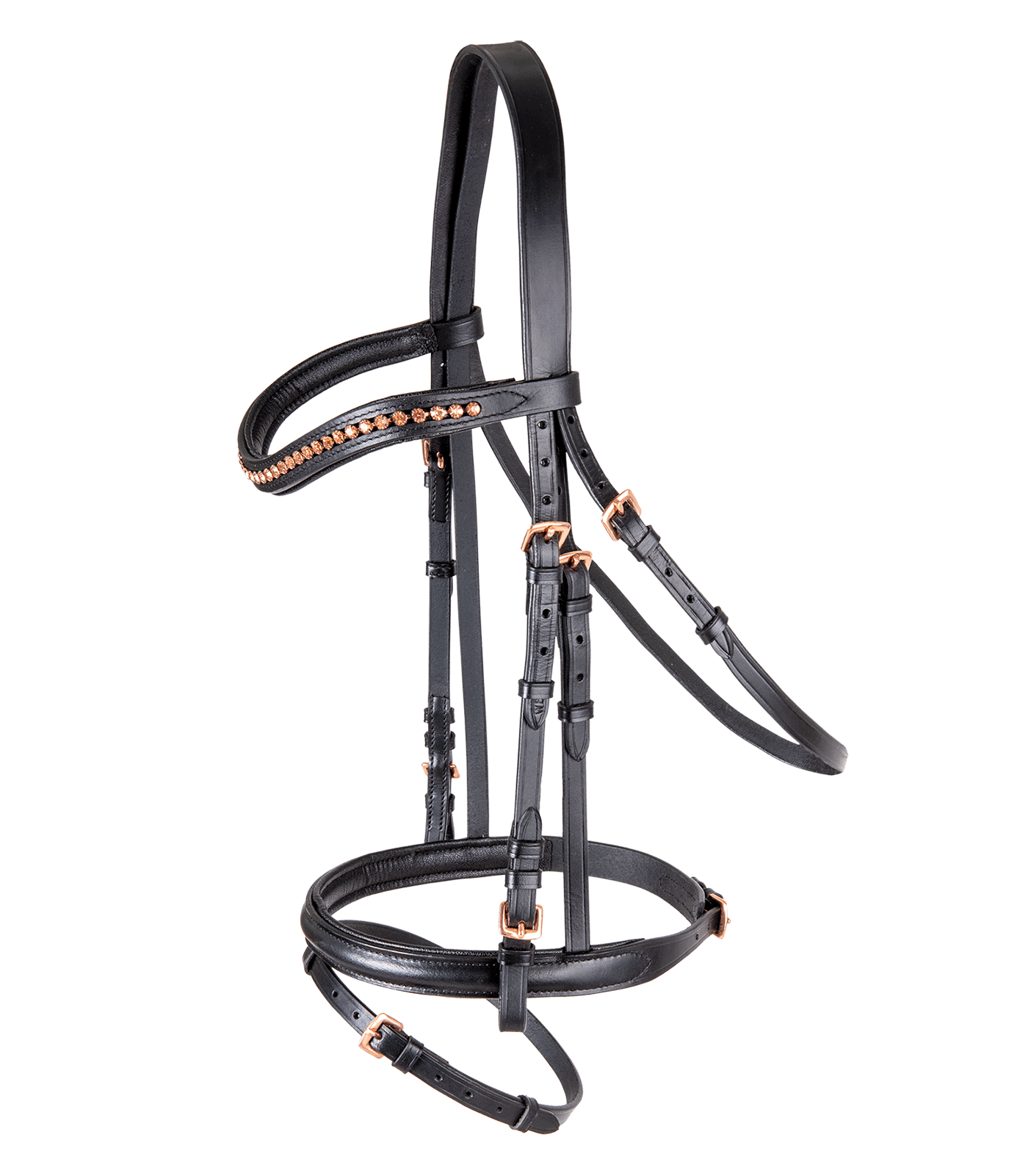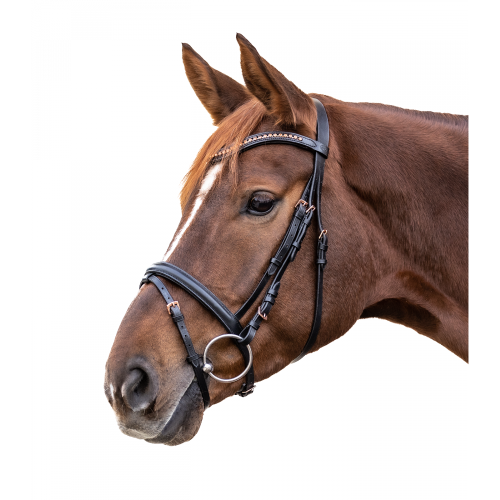 Bridon Waldhausen STAR en cuir résistant, avec muserolle combinée, frontal galbé et bouclerie rosée, livré avec rênes 19 mm !