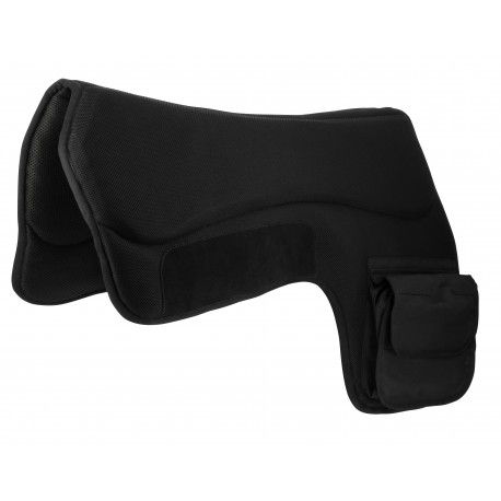 - Tapis de selle western en coton avec matelassage en feutre 18 mm. - Respirant, resistant et amortissant. - Doublé mouton synthétique. - Patch en croute de cuir bovin.