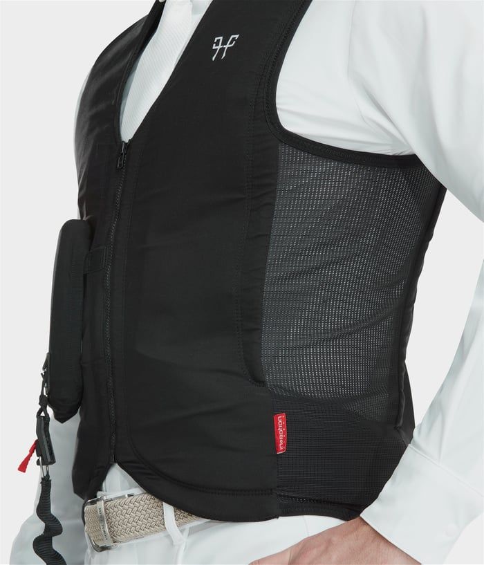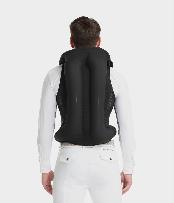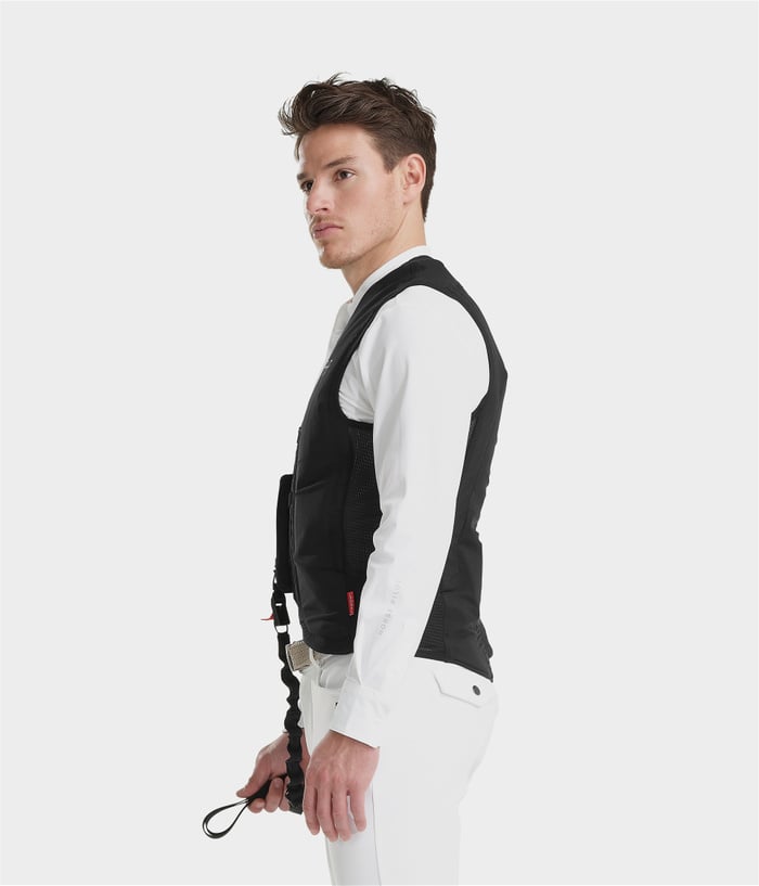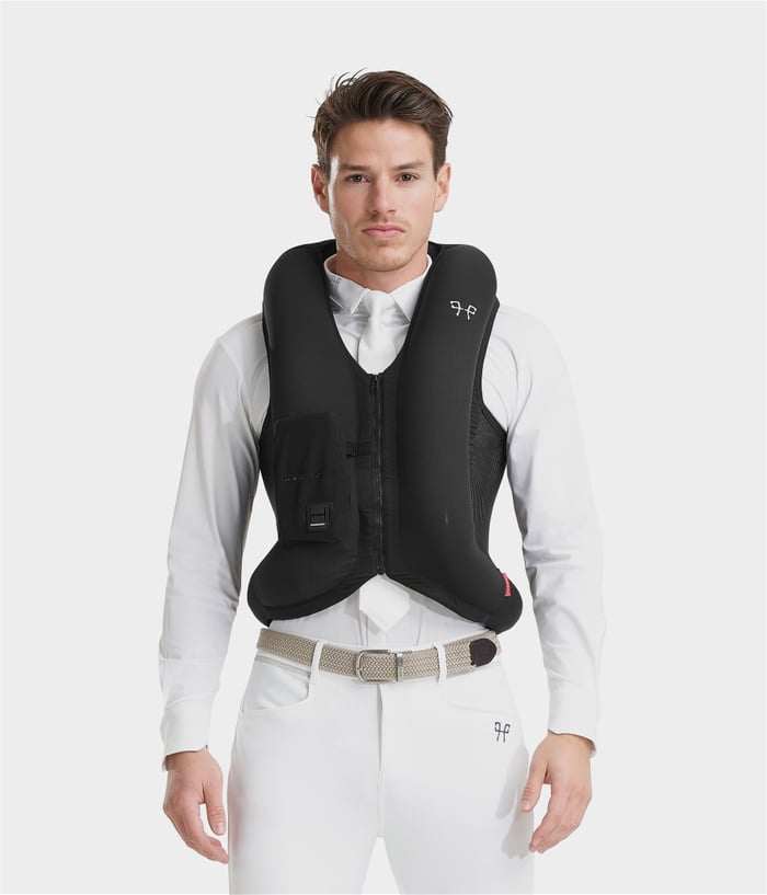 Un airbag d'équitation made in France et homologué par la nouvelle norme NF S72-800:2022 qui assure à la fois sécurité, confort et discrétion. L'airbag est livré avec une sangle d'attache et une cartouche de gaz.