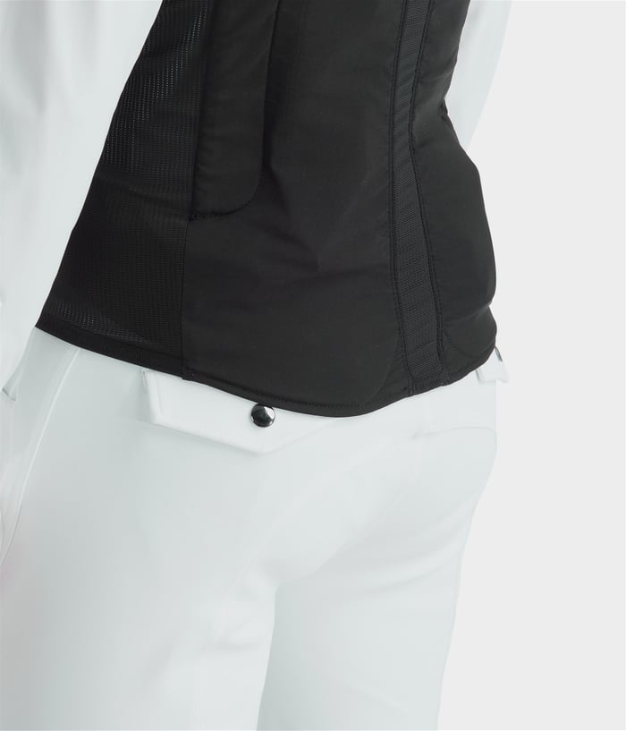 Respirant et extensible, il est équipé d’une fermeture à glissière avant et d’un bord antidérapant pour le maintenir ferme à la ceinture. En polyester élasthanne, il est rembourré de mousse de nitrile et de PVC, pour assurer une protection optimale du dos