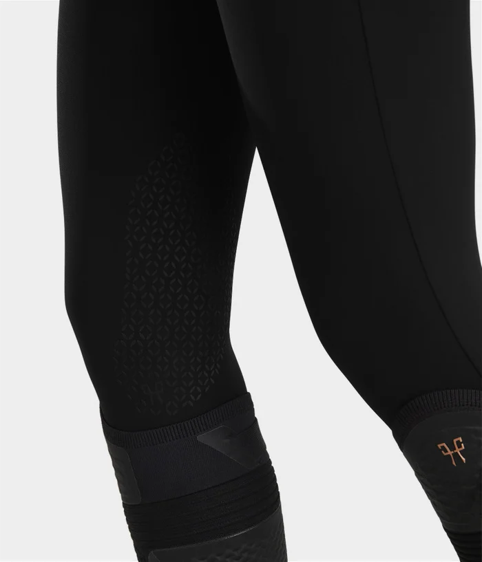 Grip genoux épuré avec logo intégré pour une adhérence subtile en selle.